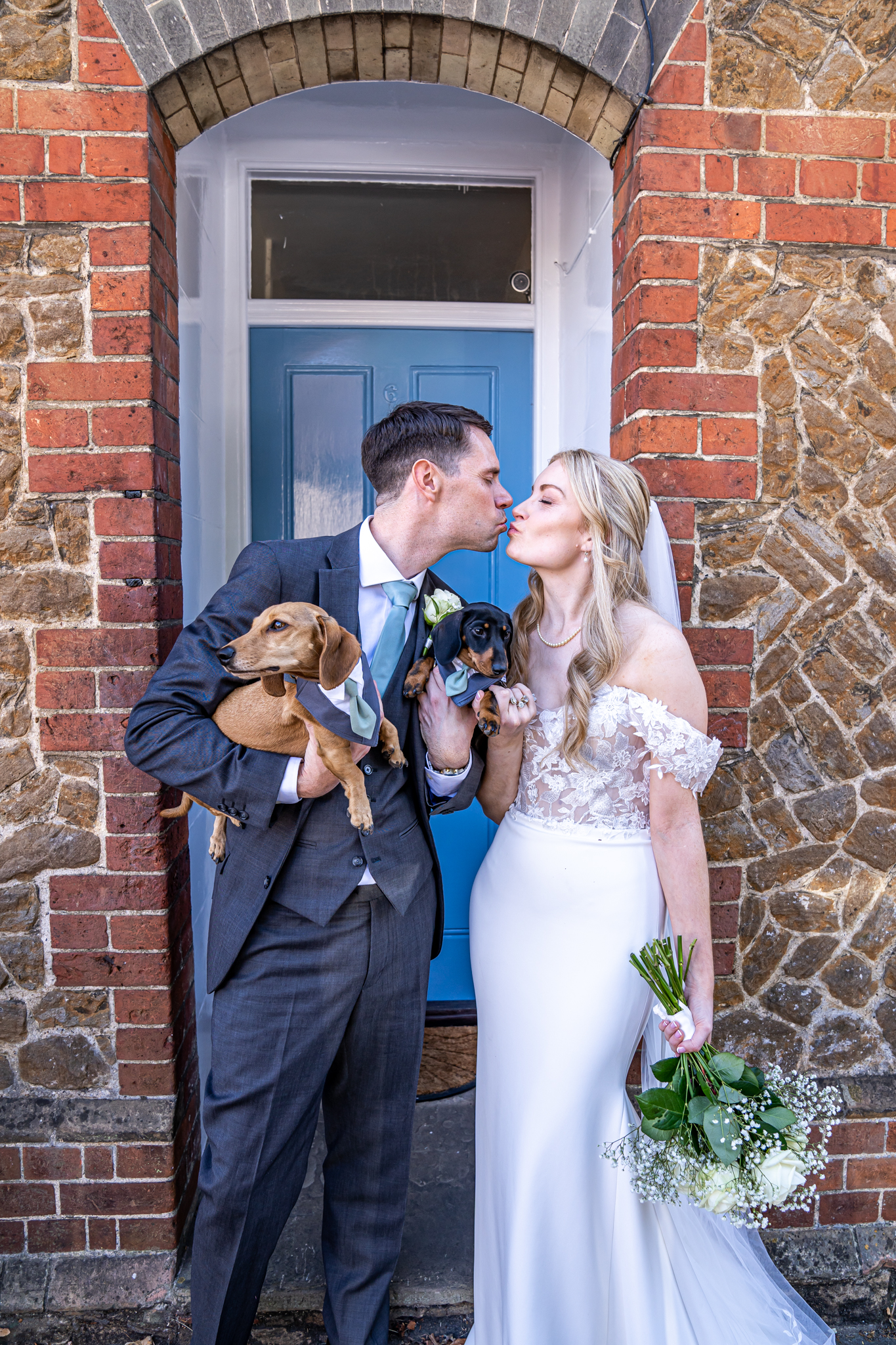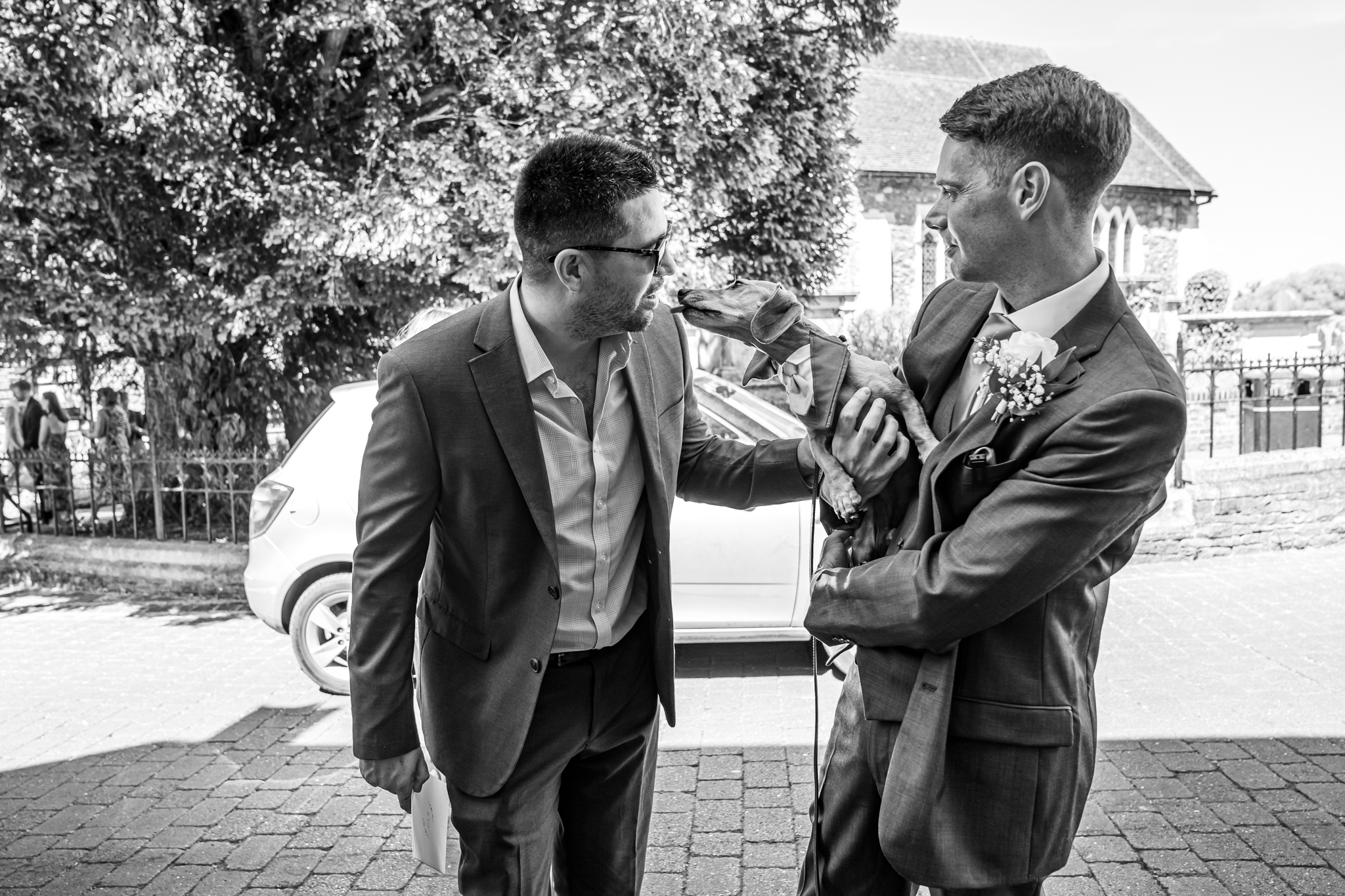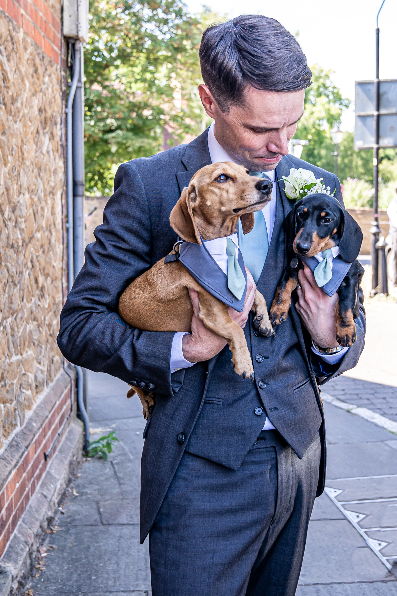 Everyone then made their way to the beautiful quintessentially English church in Guildford for the couples wedding ceremony. After the wedding ceremony the newlyweds were greeted outside the church with lots of wags and licks from their adorable Dauchshund’s, Hector and Dougie! They were so adorable, I love it when couples have their dogs at their wedding day.