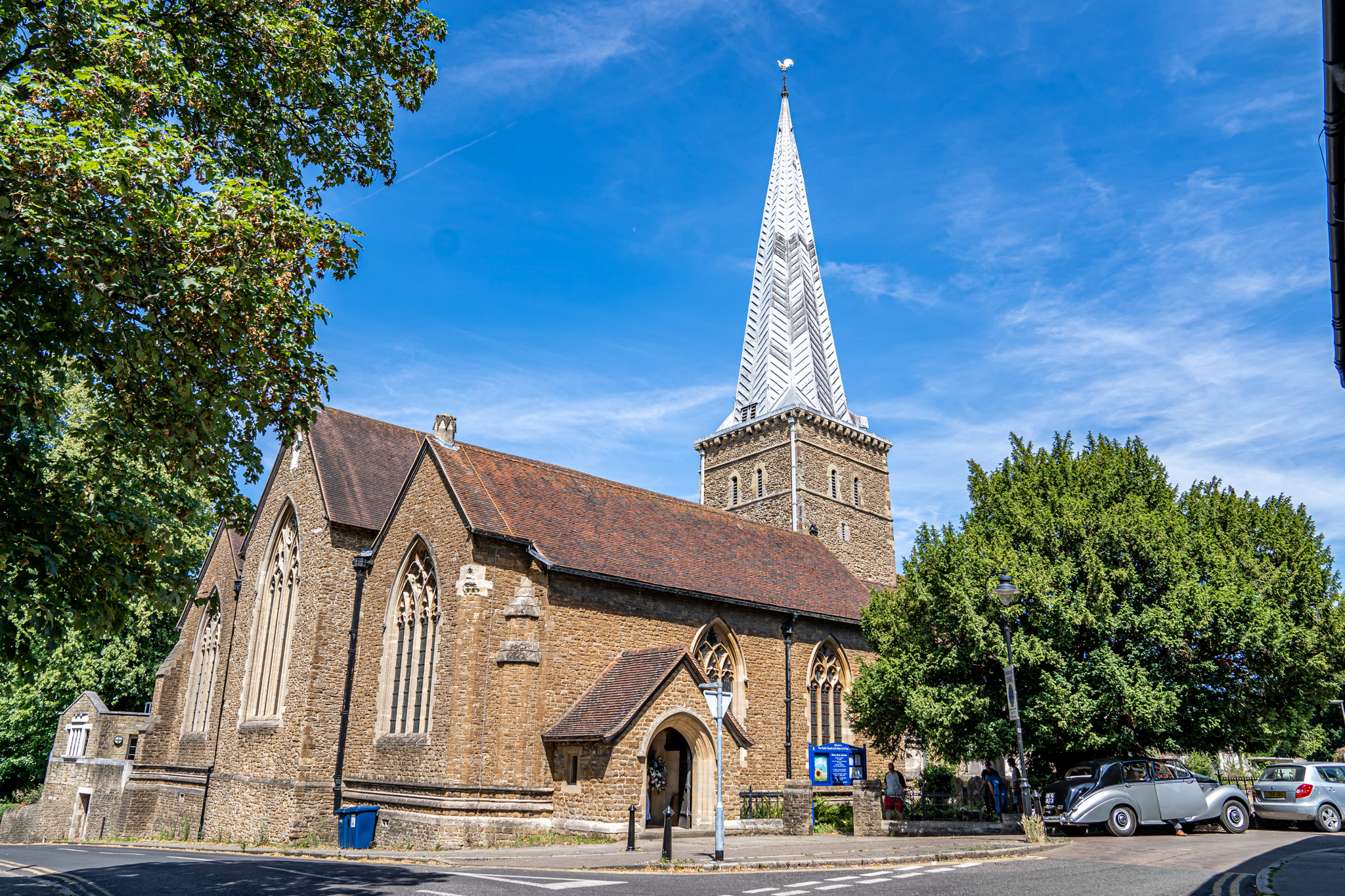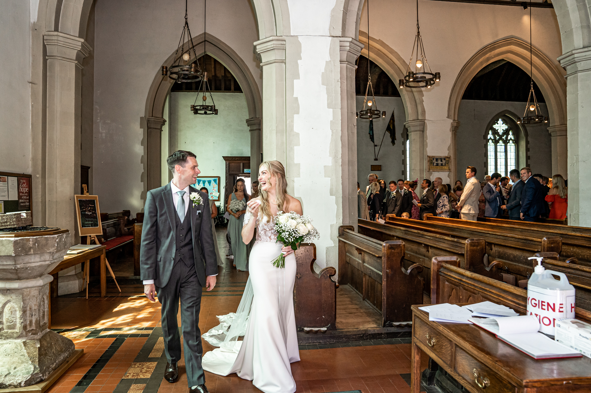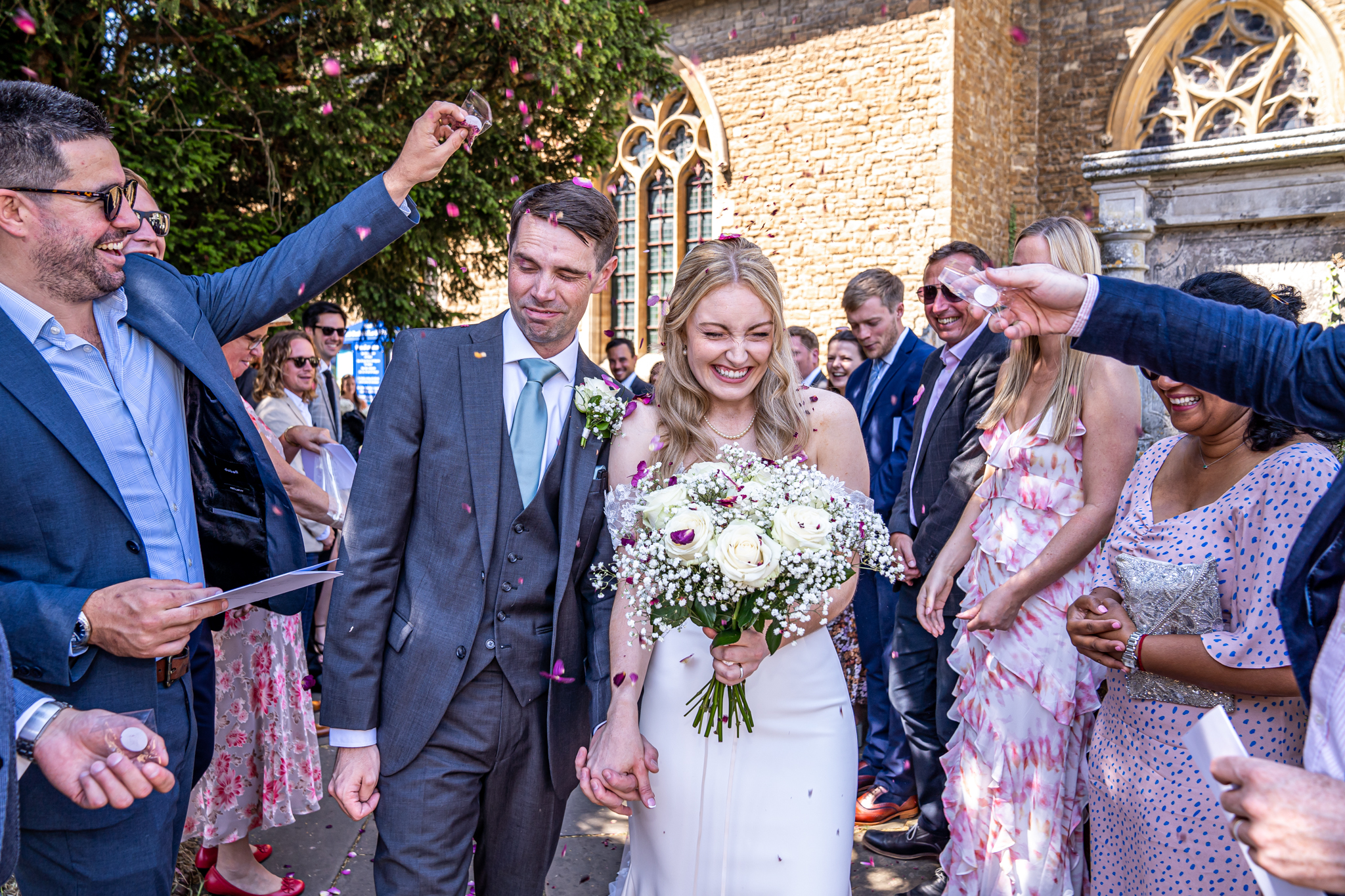Everyone then made their way to the beautiful quintessentially English church in Guildford for the couples wedding ceremony. After the wedding ceremony the newlyweds were greeted outside the church with lots of wags and licks from their adorable Dauchshund’s, Hector and Dougie! They were so adorable, I love it when couples have their dogs at their wedding day.